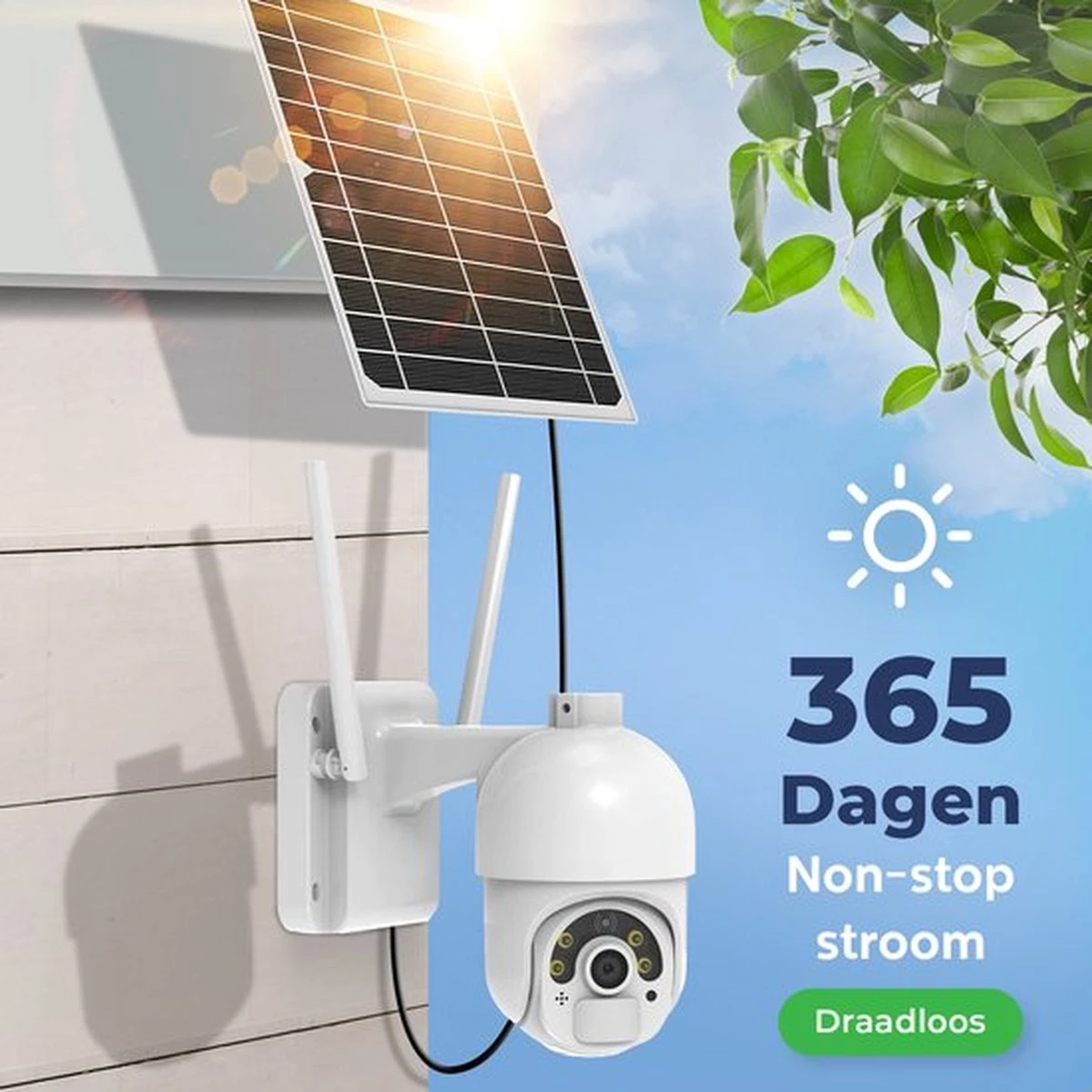 Deze Solar Powered Smart Alarm PTZ Security Camera is een volledig draadloze camera en biedt optimale beveiliging voor je huis, tuin, auto, familie of huisdieren. Doordat dit model geen kabels kun je deze eenvoudig overal plaatsen. De camera wordt opgeladen via het zonnepaneel!