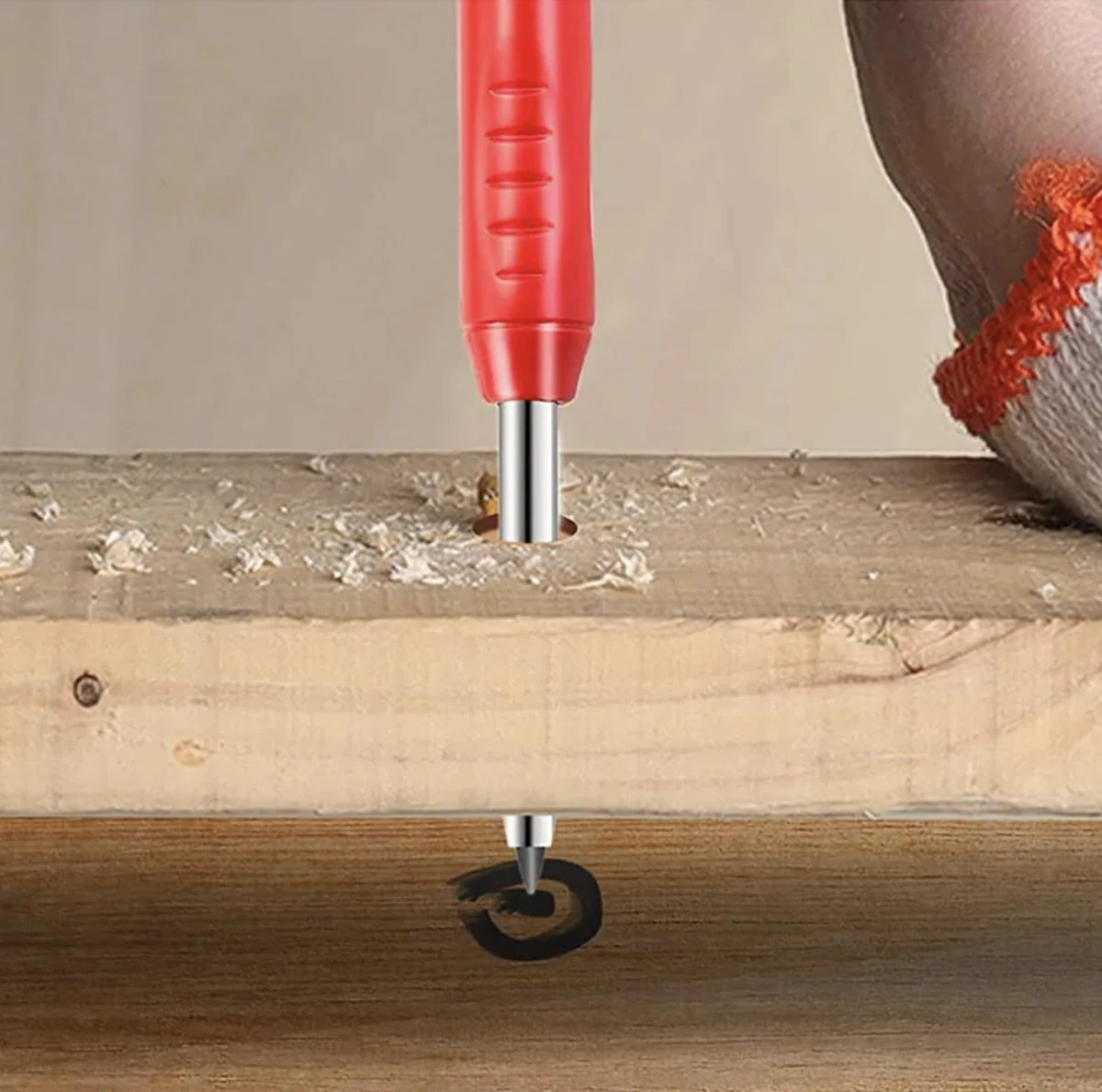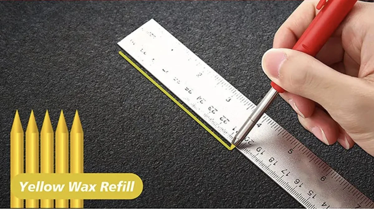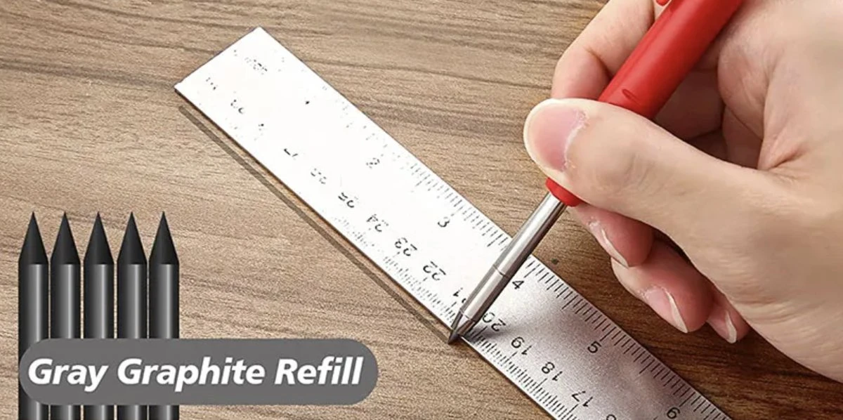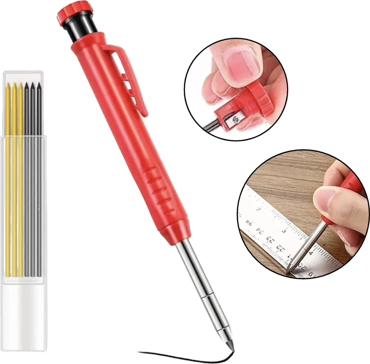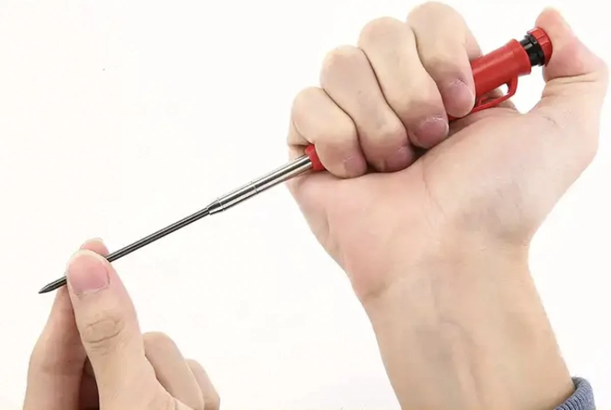 - Het potlood is verkrijgbaar in een stijlvolle en opvallende rode kleur, zodat het gemakkelijk te vinden is in je gereedschapskist of op je werkbank.