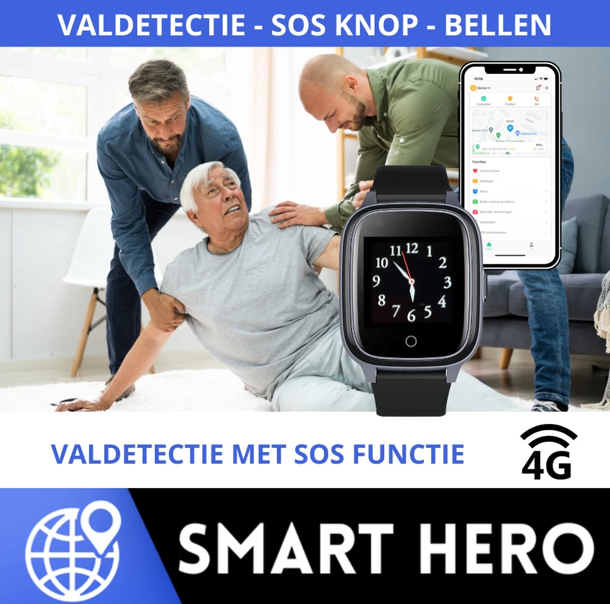 Het horloge is voorzien van een optie genaamd “valdetectie”. Wanneer de senior valt met het horloge om zal er als eerst een melding in het scherm komen of het een vals alarm is, wanneer dat zo is kan de ouderen drukken op annuleren. Mocht er wel wat aan de hand zijn dan zal het horloge binnen 3 seconde gaan bellen naar het vooraf ingestelde SOS nummer. Zo bent u snel in contact met elkaar in zulke situaties.