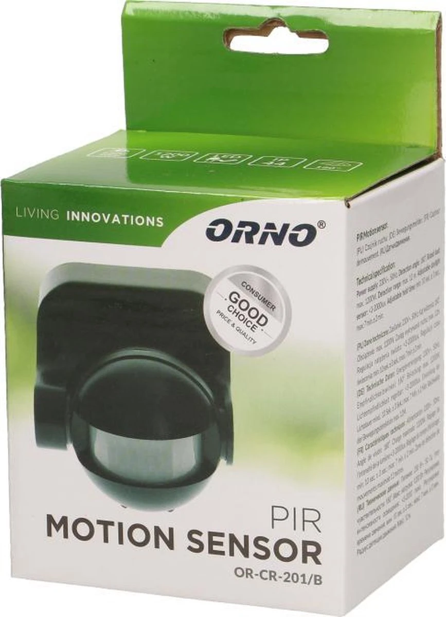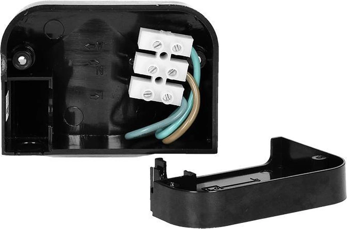 Deze PIR bewegingssensor is geschikt voor gebruik binnen- en buitenshuis dankzij zijn IP44 classificatie. De bewegingssensor is gemaakt van zwart UV-bestendig kunststof, en sluit perfect aan op een donker gekleurde achtergrond.