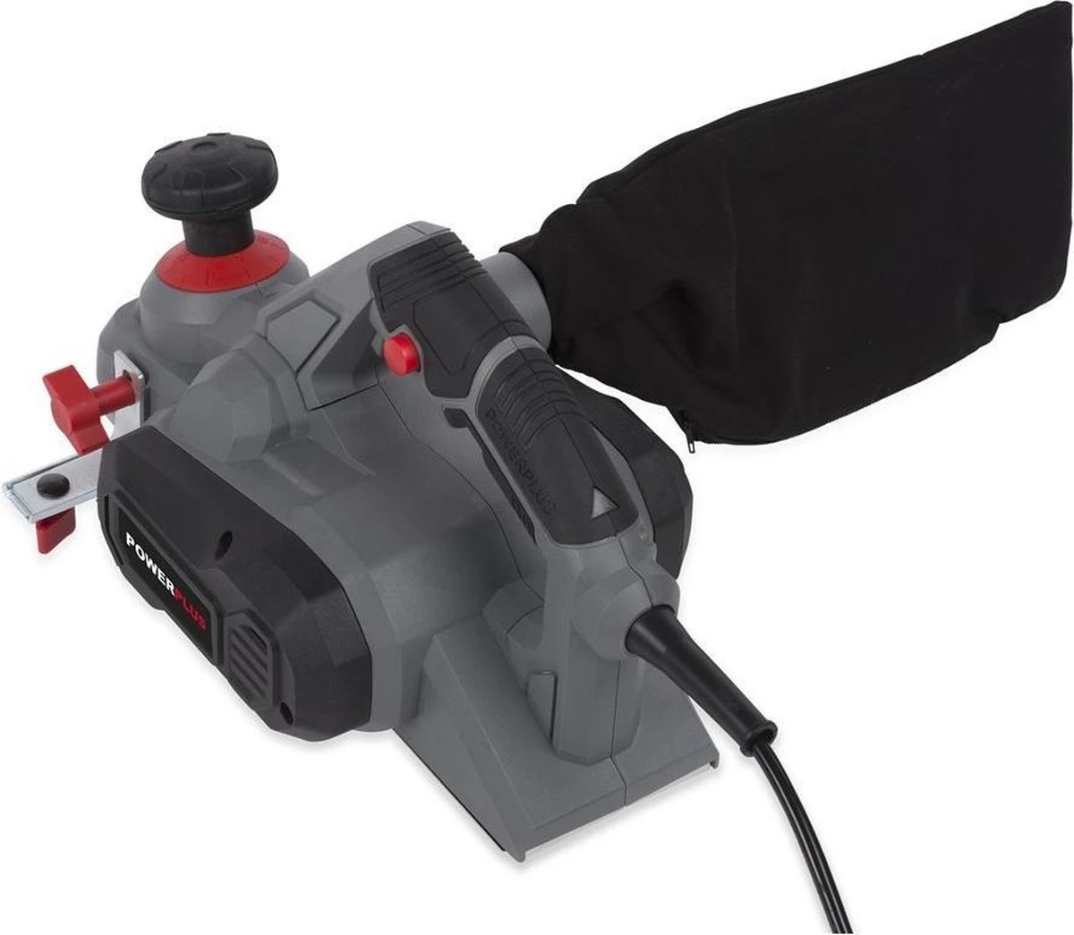 Stof vangt de POWE80030 op in de bijgeleverde stofzak. Of je sluit de schaafmachine rechtstreeks aan op de stofzuiger, dat gaat ook.