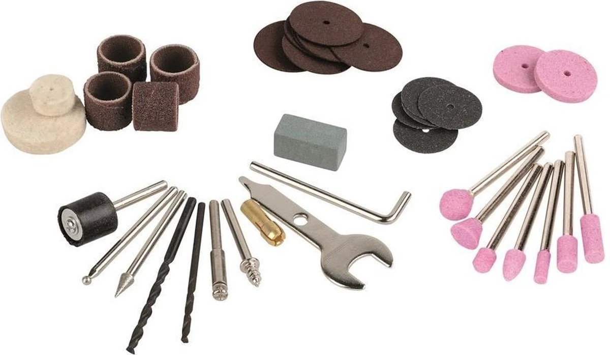 - 40 x accessoire in plastic doos (slijpsteentjes, graveerpunten, schuurwiel, schuursteen, polijstviltjes, doorslijpschijfje & vlakschuurschijfje)