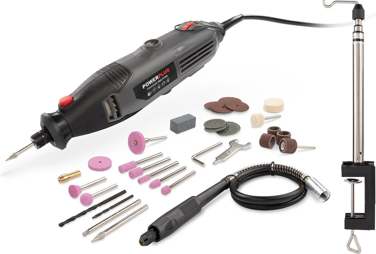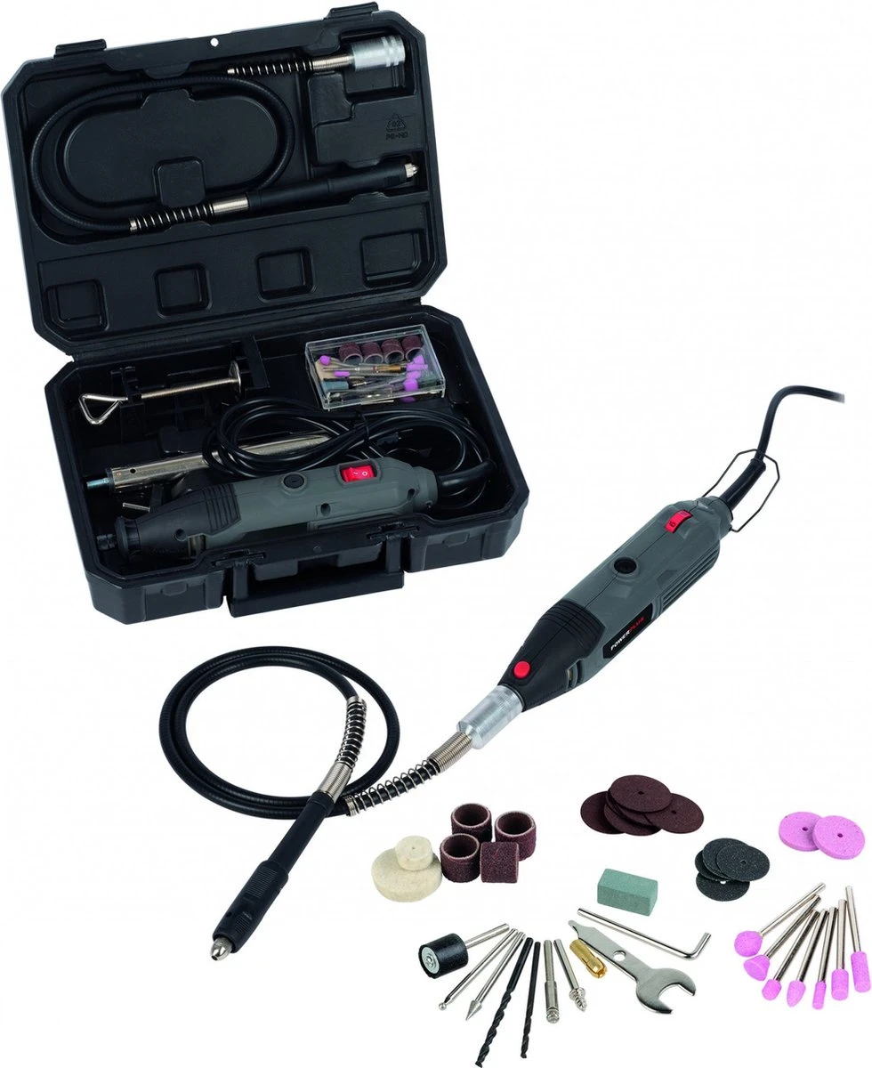 Het aantal verschillende klusjes dat je met deze compacte roterende multitool kan uitvoeren is indrukwekkend. Maak je keuze uit de 40 bijgeleverde opzetstukjes en begin met boren, frezen, graveren, polijsten, afkorten, slijpen of schuren. De 40 accessoires zitten mooi opgeborgen in een BMC-koffer, waardoor je niet lang hoeft te zoeken naar het juiste opzetstuk.