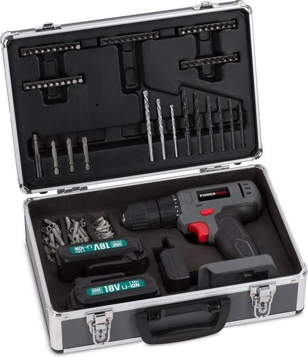 In deze stevige koffer vind je de snoerloze 18V-schroefboormachine uit het ‘POWEB’-assortiment. Hij is een handige partner bij lichte klussen in en om het huis. Dit instapmodel is ideaal voor de jonge starter die alleen gaat wonen. In de koffer zitten naast 2 batterijen en de lader ook 9 boren, 43 bits, de bithouder en pluggen. Zo kan je onmiddellijk aan het werk met deze koffer en de schroefboormachine. De draaisnelheid stem je af op je klus, hoge snelheid gebruik je voor boren, de krachtige lage snelheid is ideaal voor schroeven. Met het LED-werklampje heb je een goed zicht op je werkplek.