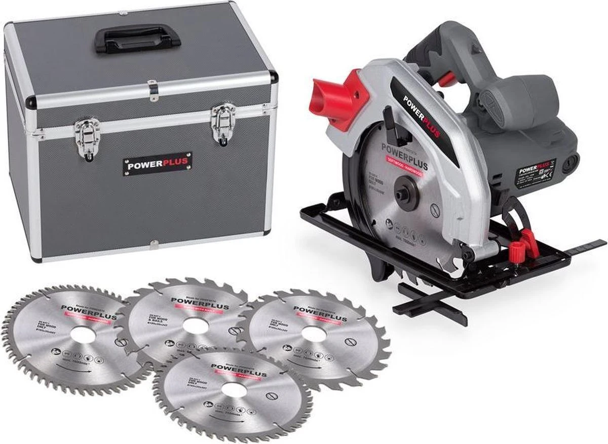 - In de praktische koffer berg je zowel de cirkelzaag als de extra zaagbladen georganiseerd op.