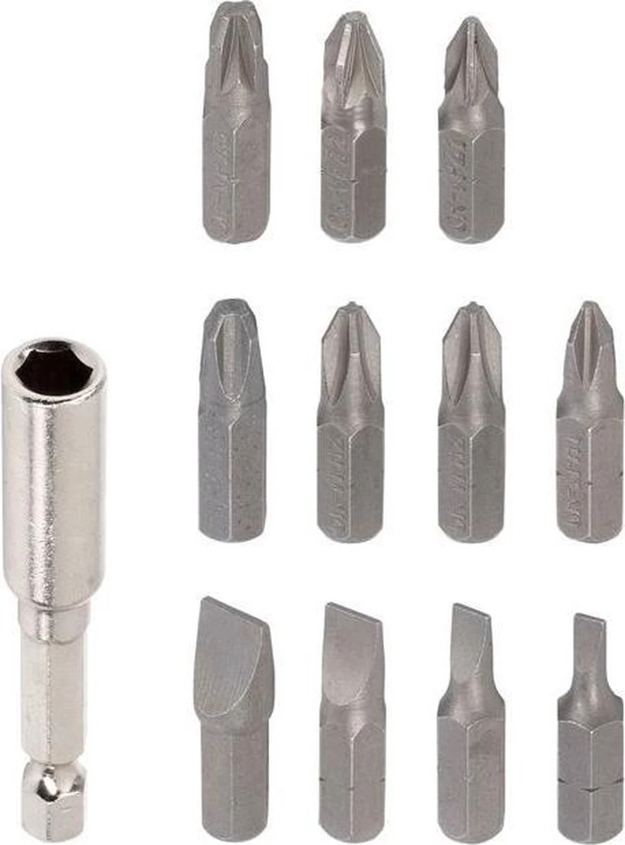 12 x 25mm bits (PZ1/PZ2/PZ2/PZ3/PH1/PH2/PH2/PH3/SL3/SL4/SL6/SL8)