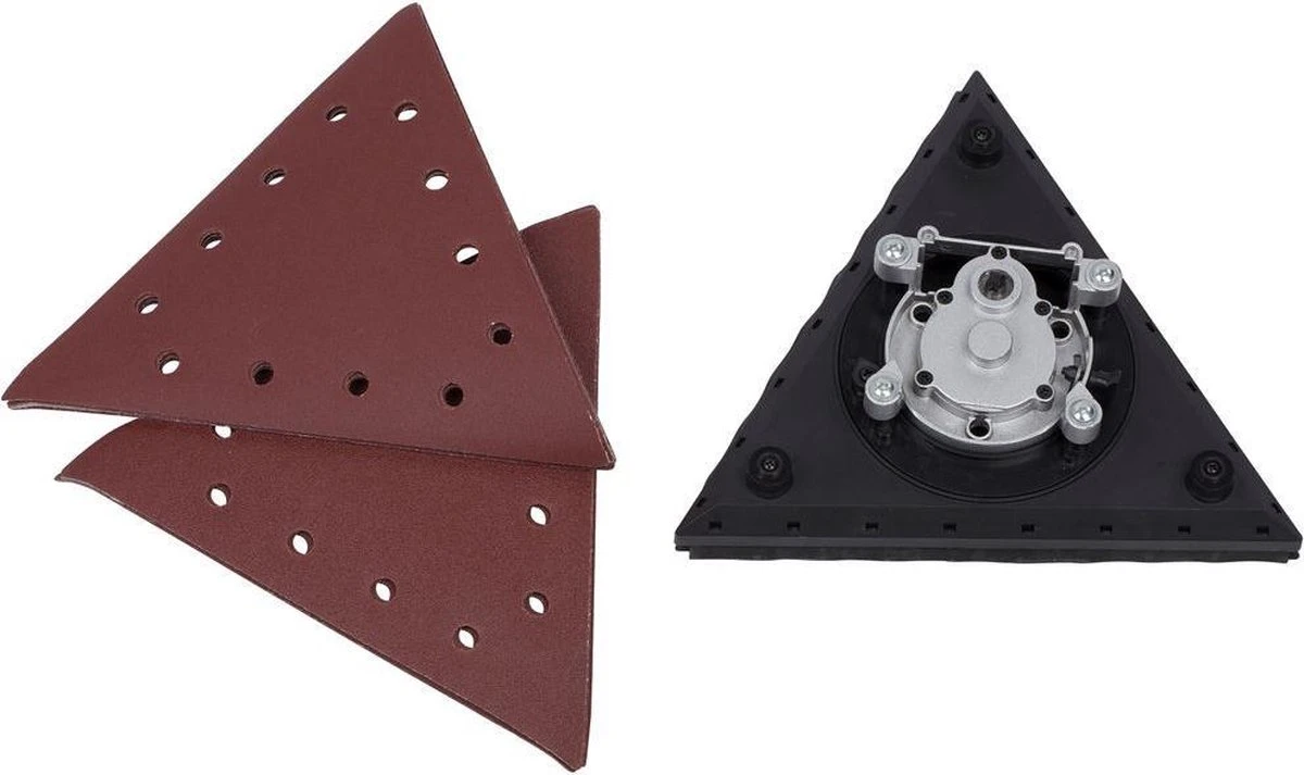 • 6 x driehoekige schuurpapieren (2x K60 / 2x K100 / 2x K240)