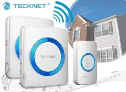 Tecknet Deurbel – Deurbelset – Twee Ontvangers – Draadloos – Duurzame Zender Zonder Batterijen – Wit