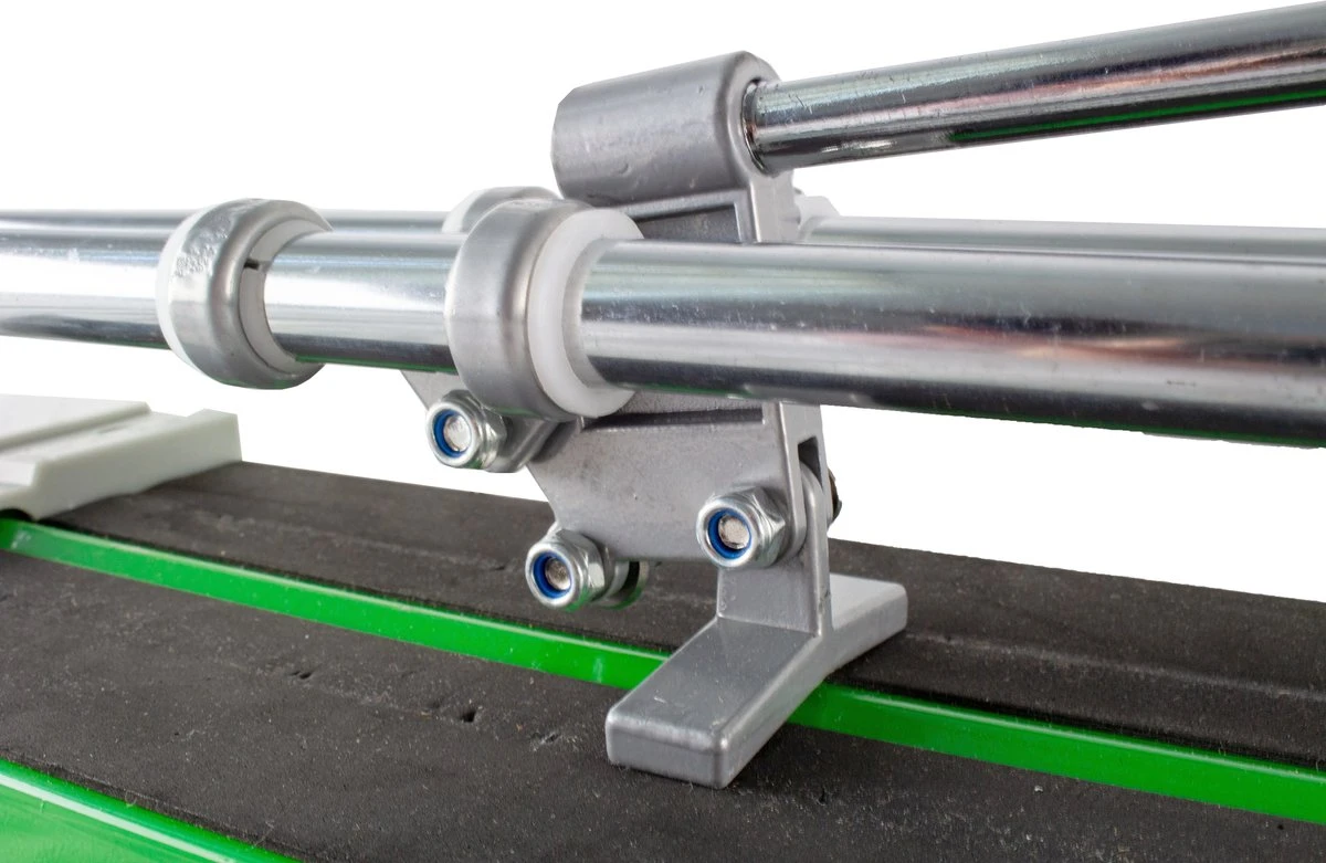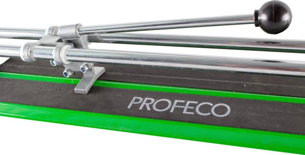 Een mooi getegelde muur of vloer? Met deze professionele Profeco tegelsnijder behaalt u het perfecte resultaat. Een handmatige tegelsnijmachine met een stalen basis en rond stalen geleide staven. Een hoogwaardig snijgereedschap voor matte en geglazuurde tegels van 5 tot 12mm dikte. De tegelsnijder is voorzien een metalen snijwiel en breekbek waarmee u een kaarsrechte snede in een tegel maakt en deze vervolgens op de snijlijn doormidden breekt. De bodemplaat is bovendien uitgevoerd met een schuimkussen oppervlakte waarmee u uw tegels beschermt tegen beschadigingen en krassen.