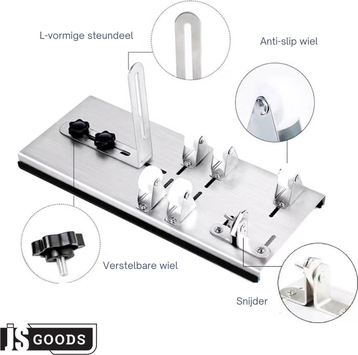 - Instelbare lengte van de montageplaat: De lengte tussen de montageplaat en het glassnijmes kan tussen 12 cm en 22 cm worden ingesteld, zodat je flessen van verschillende maten kunt snijden.