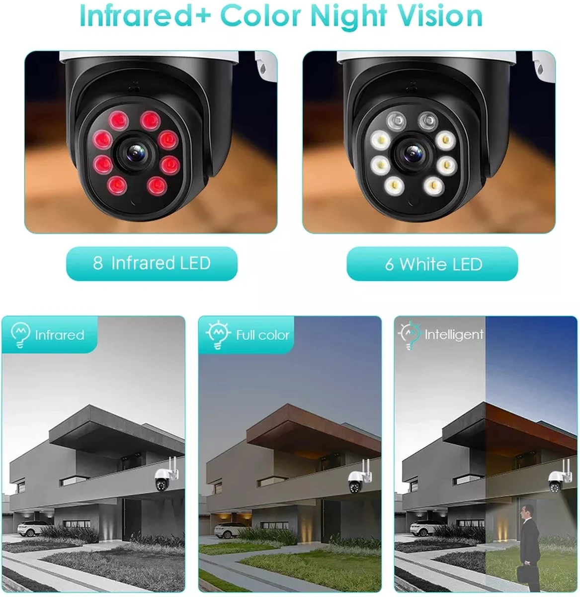 De camera is voorzien van twaalf infrarood LED’s en deze zorgen ervoor dat je, ook wanneer het donker is, altijd duidelijke beelden hebt (tot een afstand van wel vijftien meter).