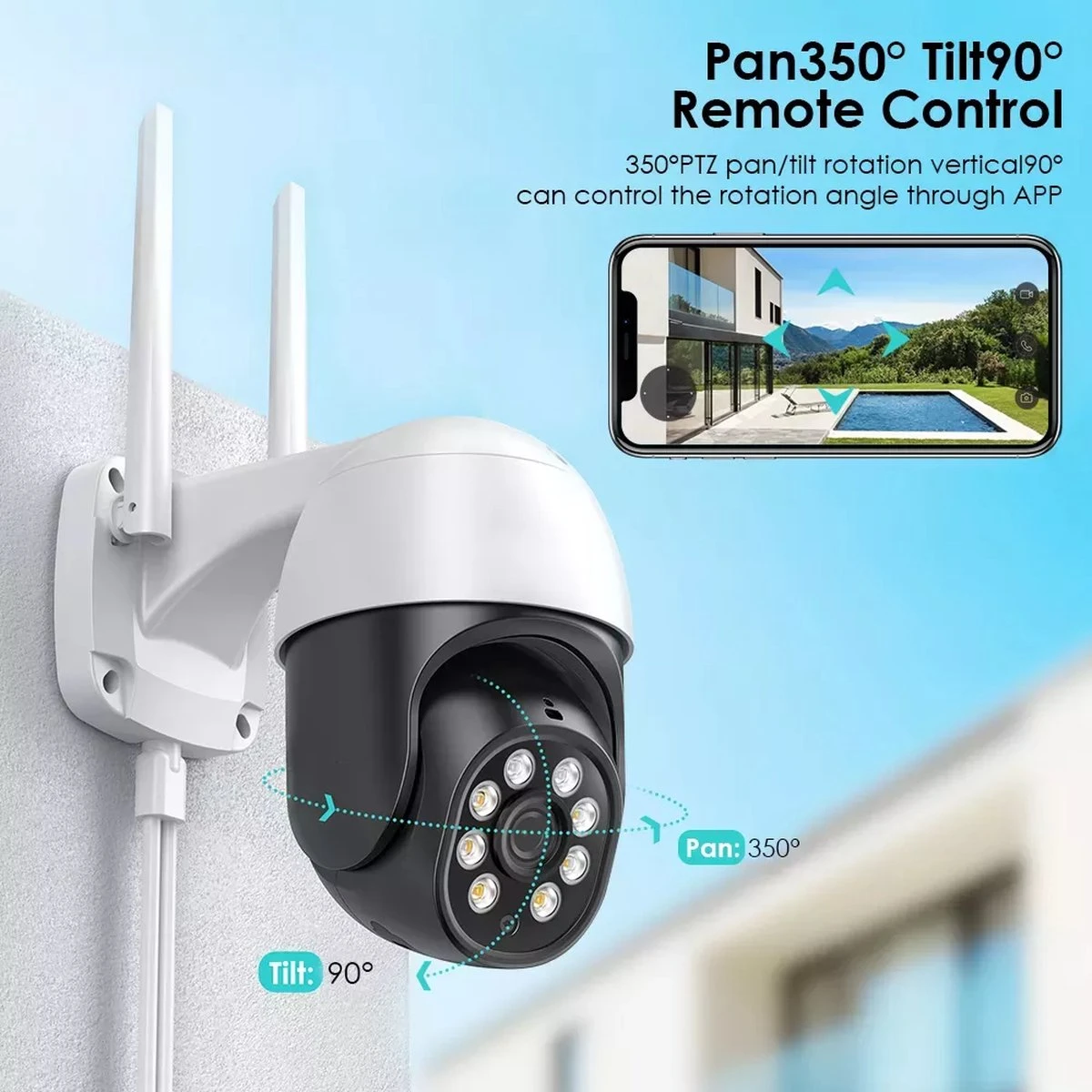 Nieuwste model! Met deze splinternieuwe outdoor beveiligingscamera weet je altijd wat er in of rondom je huis gebeurt. Naast dat je altijd direct live kunt meekijken en luisteren, ontvang je indien gewenst ook notificaties wanneer er beweging wordt waargenomen. De camerabeelden kunnen opgenomen worden op een Micro SD kaart of in de cloud en zijn eenvoudig terug te kijken via de app. Doordat de camera beschikt over een draai/kantel (Pan/Tilt) functie, kun je hem op afstand besturen.