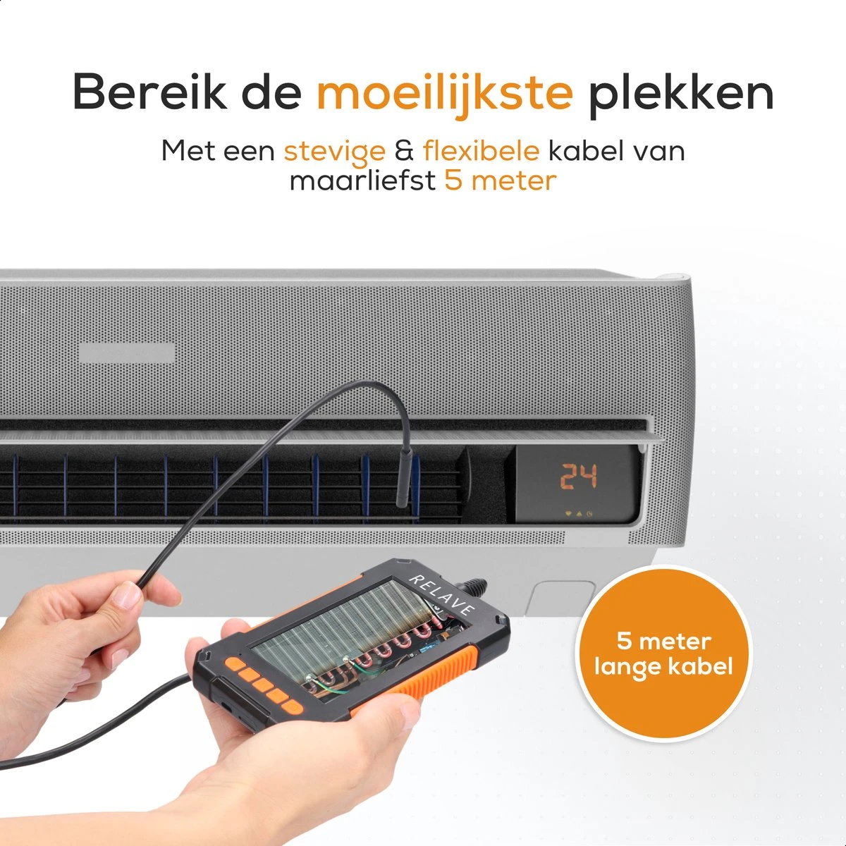 De Relave inspectiecamera is perfect voor inspecties in leidingen of gebieden die niet zichtbaar zijn met het blote oog. Ideaal om te gebruiken tijdens auto-onderhoud, pijpreparatie, mechanische inspectie en de inspectie van riolering en afvoer. Met de Relave endoscoop is het mogelijk om foto’s en video’s op te nemen en op te slaan op een SD kaart. Daarnaast heb je geen speciale app/software nodig om de endoscoop te gebruiken. Je kan namelijk direct live meekijken met de 1080P beelden op het scherm.