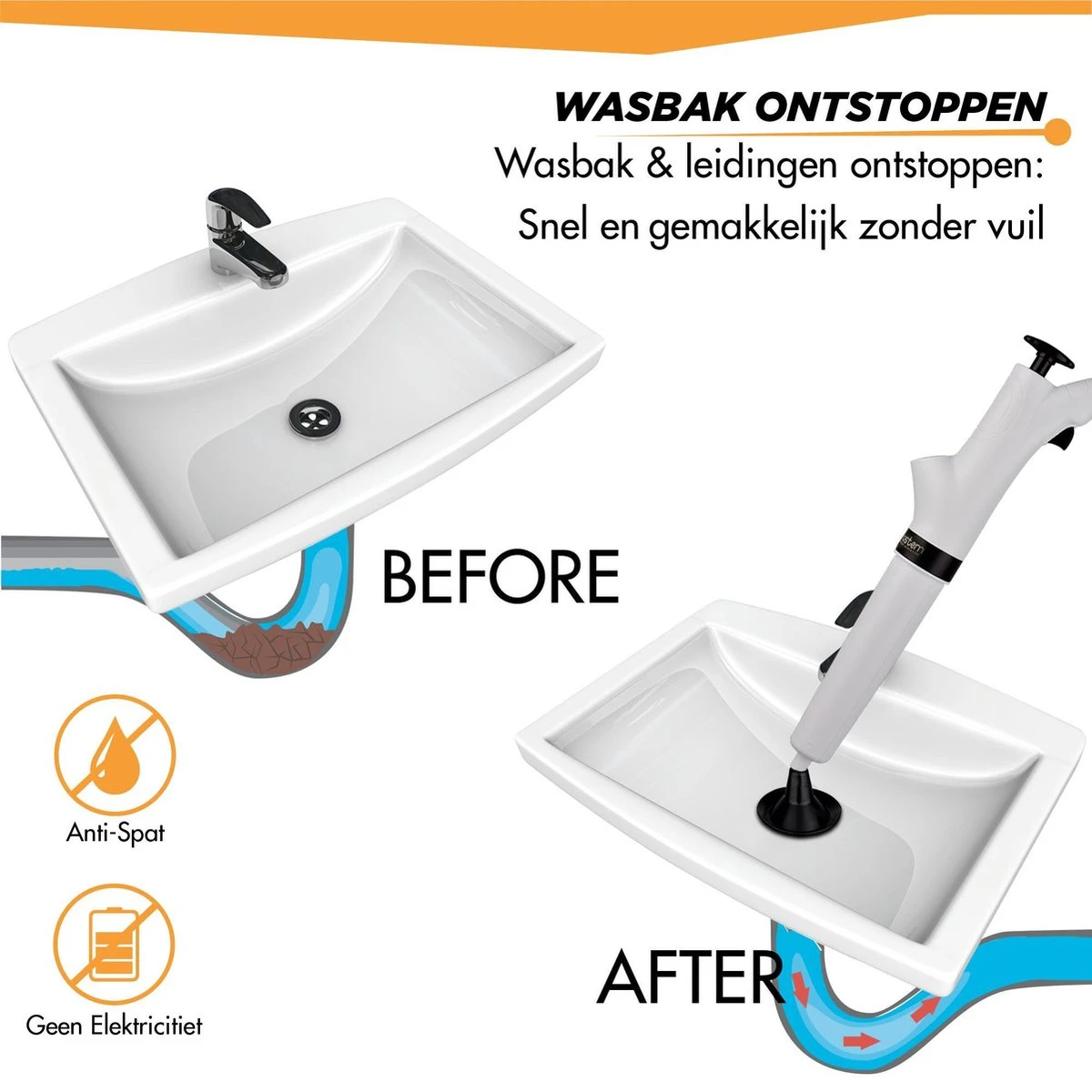 De meest perfecte ecologische oplossing voor jouw afvoer verstoppingen. Dankzij de Professionele afvoer ontstopper met luchtdruk ben jij zonder viezigheid, zonder vuil en zonder moeite af van een verstopte toilet, gootsteen en afvoer. En dat allemaal binnen een halve minuut!