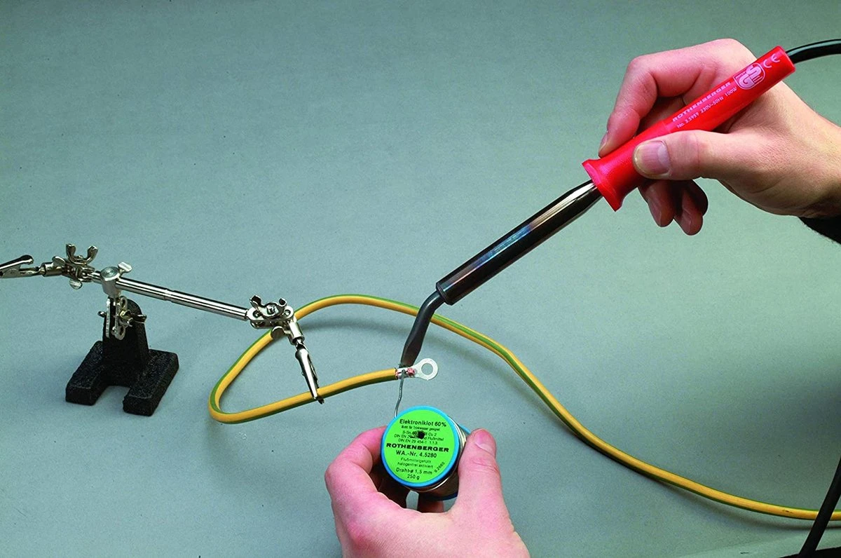 Robuuste soldeerbout van het merk Rothenberger. De bout kan een maximum temperatuur bereiken van 560°C en is voorverwarmd in circa 2 minuten.