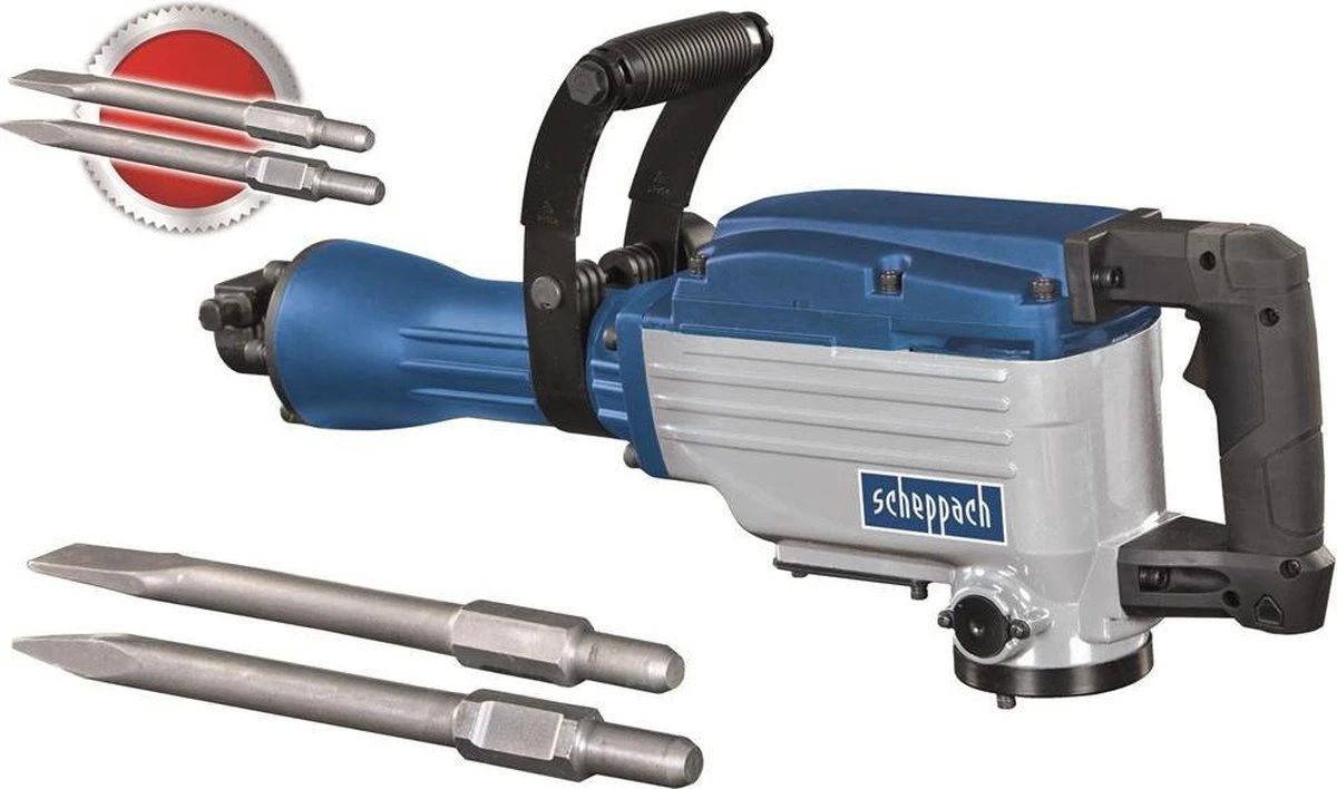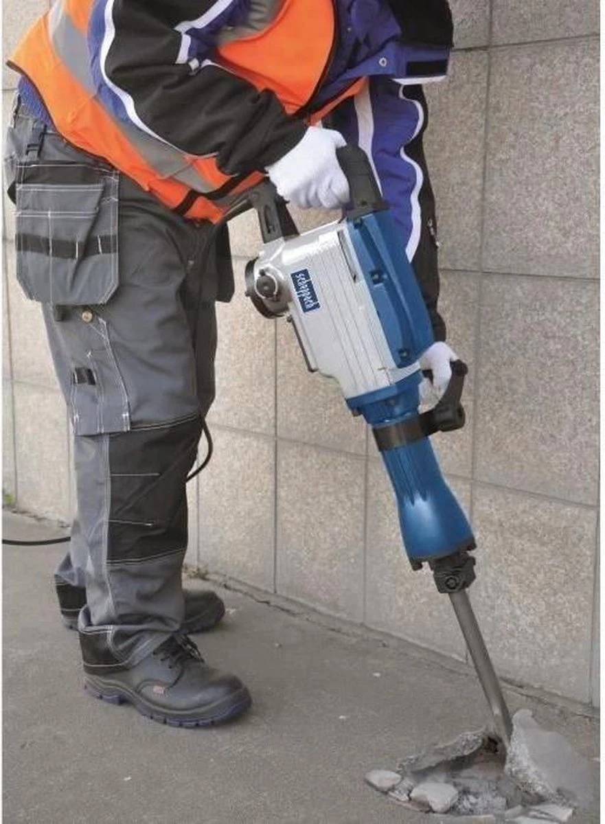 Scheppach AB1600 sloophamer heavy duty. Deze sloophamer is marktleider qua duurzaamheid en prestatie voor consistente resultaten in metselwerk en beton. De breekhamer wordt geleverd met 2 beitels: een platte beitel en een puntbeitel. De beitels kun je snel en makkelijk verwisselen. De impact kracht bedraagt maar liefst 50 joules. Inclusief solide stalen koffer.Compact, gestroomlijnd design voor moeilijk bereikbare plekken. Het soft-grip D-handvat garandeert comfortabel werken.