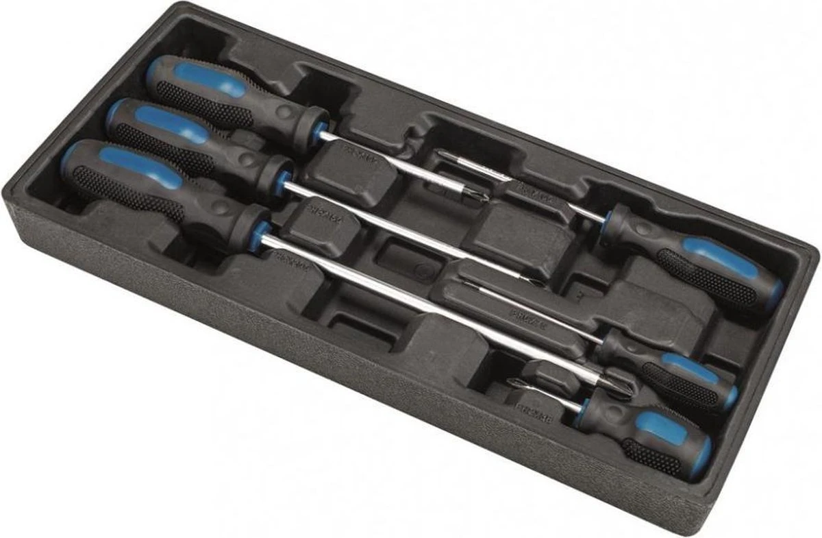 6 kruiskopschroevendraaiers: PH1x100, PH2x100, PH2x150, PH0x75, PH3x200, PH2x38