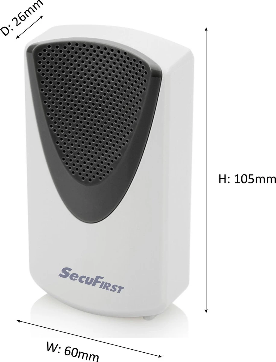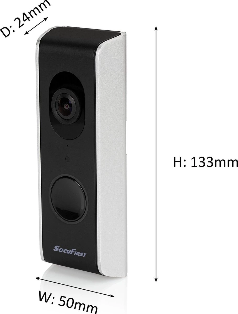 Met de SecuFirst Wi-Fi deurbel DID701B, mis je nooit meer een bezoeker. Of je nu thuis bent of buiten de deur, je ontvangt altijd een oproep op je telefoon of tablet wanneer er iemand aanbelt. Als je de oproep van de video deurbel opneemt, dan kun je via de SecuFirst HD App de bezoeker direct zien en met hem communiceren, overal ter wereld. Door de extra grote kijkhoek van 140° zal uw bezoeker altijd in beeld zijn. In de doos zit ook nog een montage beugel elke de camera 15° draait naar de deur, deze is zowel links als rechts van de deur te monteren. De beelden van de bezoekers worden automatisch opgenomen op een meegeleverde micro SD kaart van 16GB. Deze kaart is geschikt om 1300 bewegingen op te nemen. Als de kaart vol is, zal deze automatisch overschrijven. Indien gewenst kunt u de micro sd kaart vervangen tot maximaal 128GB. De opgenomen beelden zijn gemakkelijk terug te kijken of te downloaden via onze SecuFirst HD app. Daarnaast neemt dit product op beelden op van bewegingen. In de verpakking is een draadloze binnen gong meegeleverd welke op 3x AA batterijen werkt (Niet meegeleverd). Naast dat u een oproep krijgt op uw smartphone of tablet, gaat er ook in uw huis een gong af.