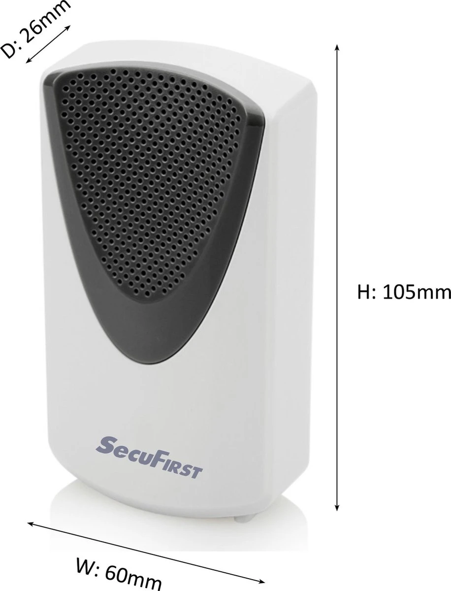 Met de SecuFirst Wi-Fi deurbel DID701BB, mis je nooit meer een bezoeker. Of je nu thuis bent of buiten de deur, je ontvangt altijd een oproep op je telefoon of tablet wanneer er iemand aanbelt. Als je de oproep van de video deurbel opneemt, dan kun je via de SecuFirst HD App de bezoeker direct zien en met hem communiceren, overal ter wereld. Door de extra grote kijkhoek van 140° zal uw bezoeker altijd in beeld zijn. In de doos zit ook nog een montage beugel elke de camera 15° draait naar de deur, deze is zowel links als rechts van de deur te monteren. De beelden van de bezoekers worden automatisch opgenomen op een meegeleverde micro SD kaart van 16GB. Deze kaart is geschikt om 1300 bewegingen op te nemen. Als de kaart vol is, zal deze automatisch overschrijven. Indien gewenst kunt u de micro sd kaart vervangen tot maximaal 128GB. De opgenomen beelden zijn gemakkelijk terug te kijken of te downloaden via onze SecuFirst HD app. Daarnaast neemt dit product op beelden op van bewegingen. In de verpakking is een draadloze binnen gong meegeleverd welke op 3x AA batterijen werkt (Niet meegeleverd). Naast dat u een oproep krijgt op uw smartphone of tablet, gaat er ook in uw huis een gong af.