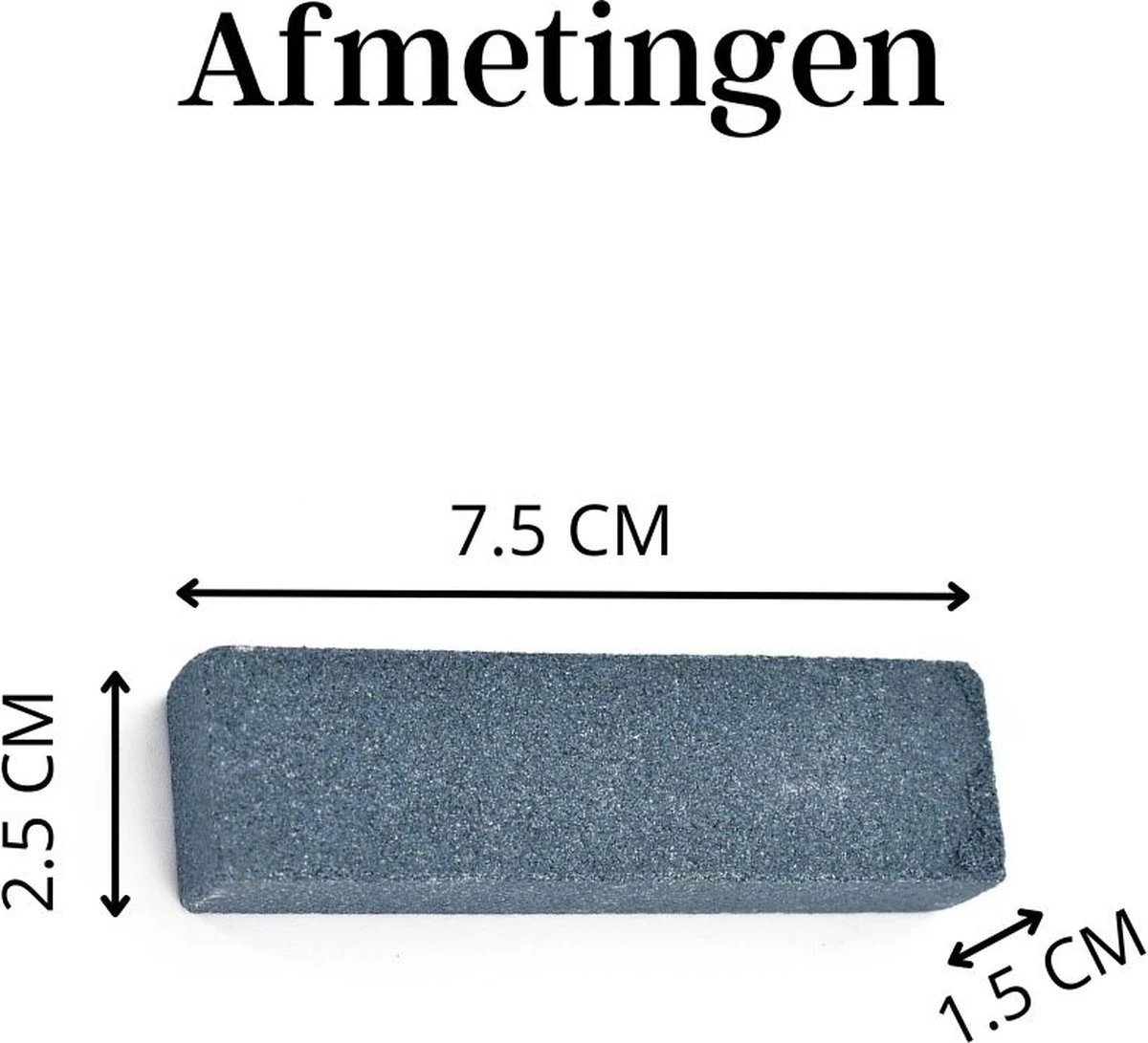Door rustig met de steen over je messen heen en weer te gaan kun je deze dus gemakkelijk en eenvoudig slijpen. Het product is gemaakt van dubbelzijdig staal en heeft een afmeting van 7.5×2.5×1.5 cm.