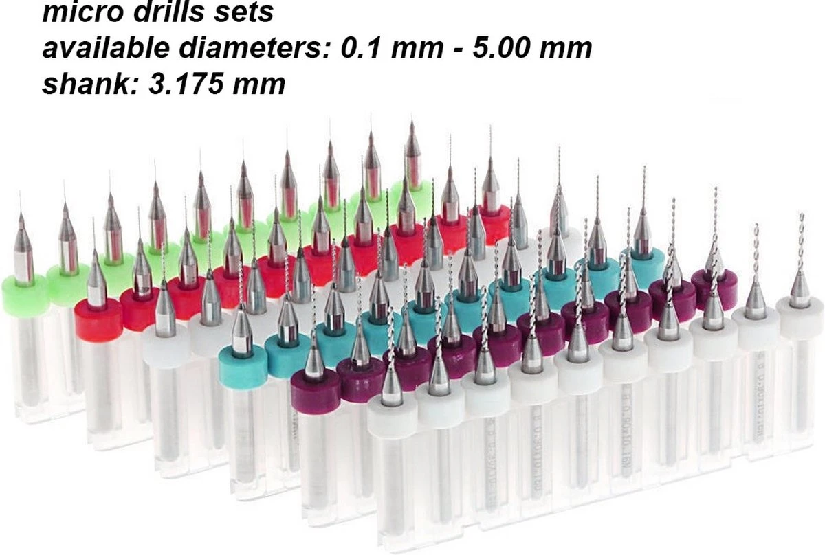Micro boortjes set van 0.50 mm geleverd in een kunststof doosje.