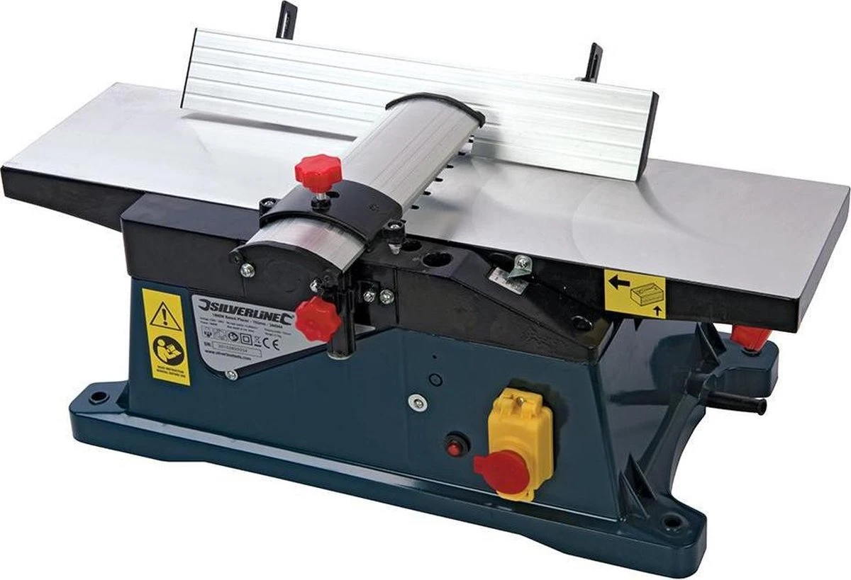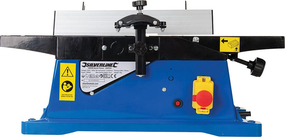 Netstroom vlakbank met ‘Heavy-Duty’ basis, voor nauwkeurige en fijne schaafsneden in houten en plastic oppervlakken. De verstelbare geleider kantelt tussen 90° en 135° voor het schaven van onregelmatige vormen. Ingebouwde stofpoort voor een efficiënte stofontginning. Noodstopknop voor gebruiksveiligheid. Anti-terugslag hulpmiddel. Max. schaafdiepte 3 mm. Max. schaafbreedte 150 mm. Onbelaste snelheid 12.000 min-1.