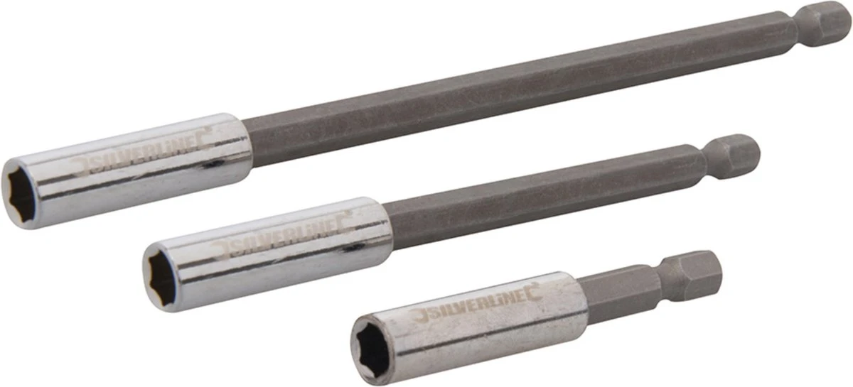 Magnetische doppen voor een optimale grip op schroef bits. Snelle bit wissels. 1/4 inch, zeskant aandrijving. 1/4 inch, zeskant dop. Lengtes 60, 100 en 150 mm.