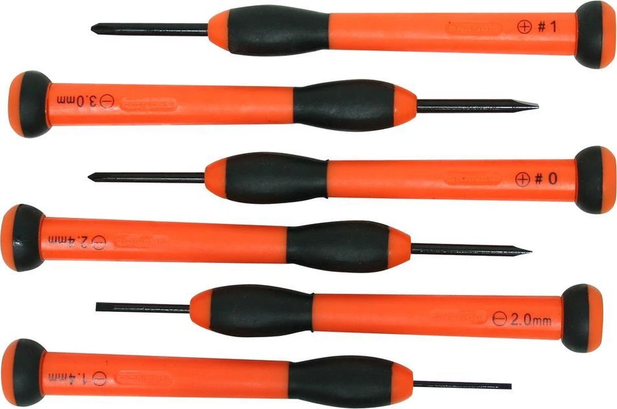 • Precisie-schroevendraaierset bestaande uit sleufkop- en kruiskopschroevendraaiers