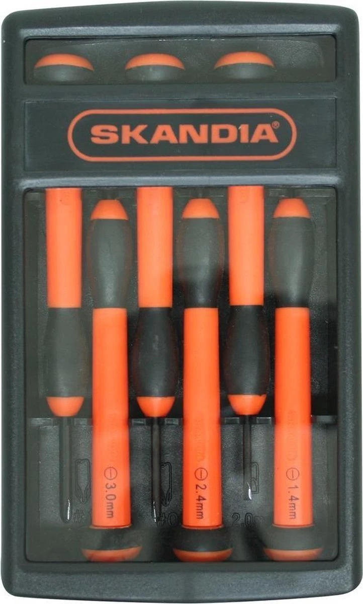 Deze precisie-schroevendraaierset van Skandia wordt ook wel instrumentmakers-schroevendraaierset genoemd. De 6-delige set is door zijn variatie in kleine maten ideaal voor juweliers en modelbouwers, of bij fijn mechanisch werk. Zo zijn de schroevendraaiers goed te gebruiken bij precisieklussen met bijvoorbeeld mobiele telefoons, elektronica, computers, kleine apparaten, horloges of brillen.
