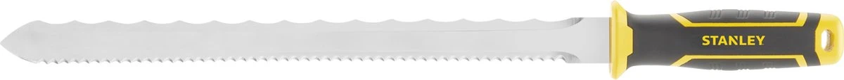 Dit STANLEY FatMax Isolatiemes met 350mm stalen blad is geschikt voor het versnijden van allerlei isolatiematerialen. Met de fijne vertanding kan je gemakklijk isolatieblokken of –platen versnijden en met de grove vertanding isolatiewol.