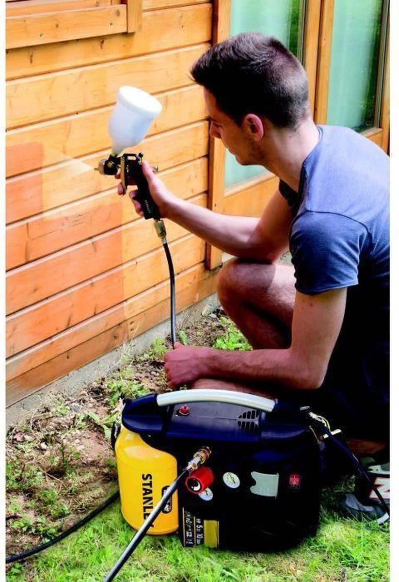 De DN 200/10/5 Airboss compressor van STANLEY heeft een maximale werkdruk van 10 bar en een tankinhoud van 5 liter. Met deze STANLEY luchtcompressor kan je prima gereedschappen of je werkplek schoonblazen. Deze compressor is ook geschikt om je band of luchtbed op te blazen. Aansluiten van je luchtgereedschap zoals een verfspuit of tacker is geen probleem voor deze compressor. De draagriem zorg ervoor dat je de compressor overal mee naar toe kunt nemen.
