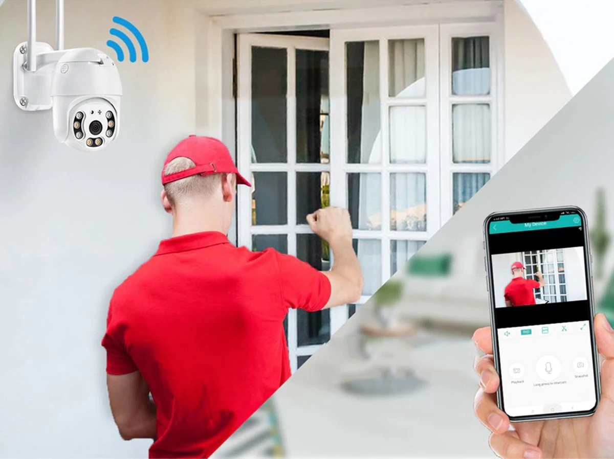 Deze 5MP PTZ (Pan/Tilt/Zoom) WIFI beveiligingscamera is precies wat u zoekt. Wanneer de camera beweging detecteert, kan het realtime een alarm naar uw telefoon sturen. De camera bevat auto-track, die automatisch beweging in realtime volgt wanneer het lichaamsactiviteit vastlegt en de opname opslaat als video. De ingebouwde microfoon en luidspreker kunnen een gesprek tussen u en uw bezoeker tot stand brengen. De beveiligingscamera heeft nachtzicht in kleur, waardoor het mogelijk is om ’s nachts duidelijk video’s te kunnen opnemen.