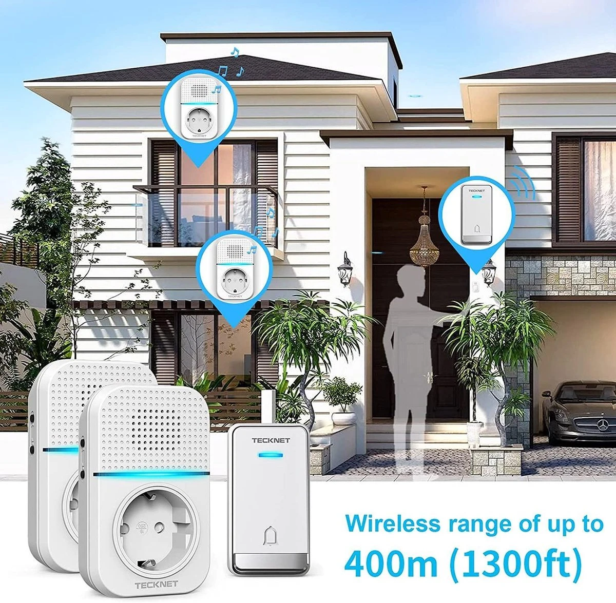 - 150 meter bereik: Voldoende radiobereik om de radiodeurbel overal in uw huis te installeren.