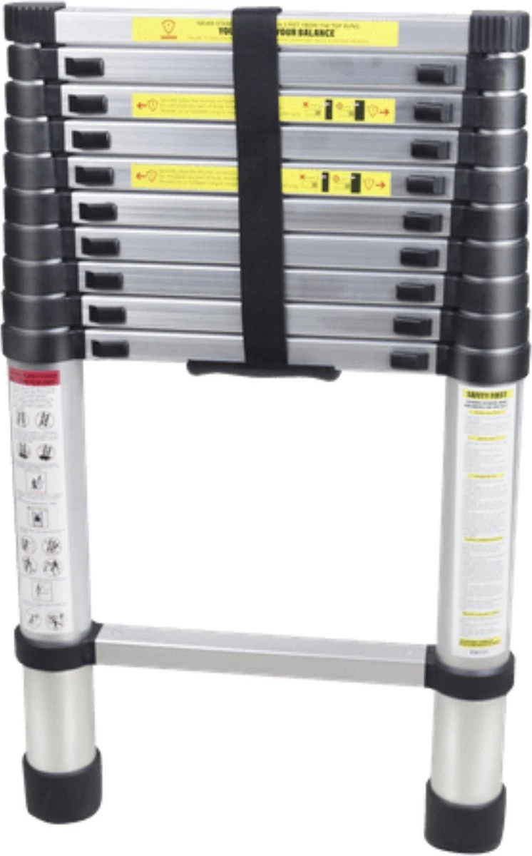 Stevige, robuuste ladder met 11 treden, uitschuifbaar tot een max. lengte van 3.2 meter. Voor binnen en buiten. Veilig en stabiel. Compact en draagbaar, lengte ingeklapt 79 cm. Belastbaar tot max. 150 kilo.