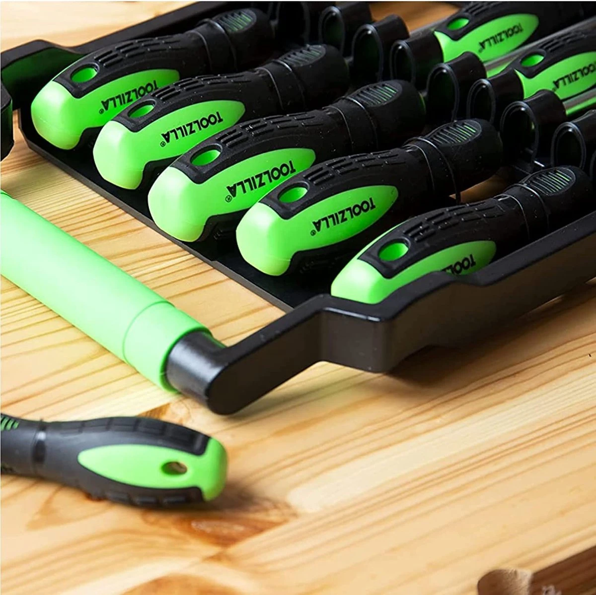Schroevendraaierset voor zwaar gebruik – Gereedschap voor mannen en vrouwen. Volledige compatibiliteit – Toolzilla biedt sleufschroevendraaiers, Pozidriv-schroevendraaiers en sleufschroevendraaiers aan