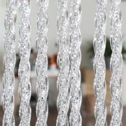 Wanneer je het gordijn voor de eerste keer ophangt zullen de strengen niet mooi recht hangen. Dit is volledig normaal. Na enkele dagen zullen ze door hun eigen gewicht perfect recht hangen.