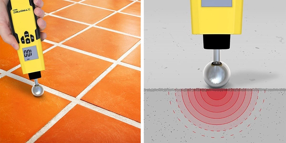 Door de dielektrische meetmethode, geschiedt de vochtindicatie absoluut niet destructief, er zijn geen electroden of sondes nodig in het materiaal.