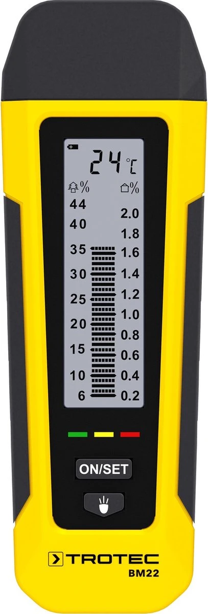 Een staafdiagram en de extra directe indicatie van het vochtvolume in absolute percentages vergemakkelen het aflezen van vochtwaarden. Een apart meetbereik voor hout- of bouwmateriaal verhoogt de nauwkeurigheid.