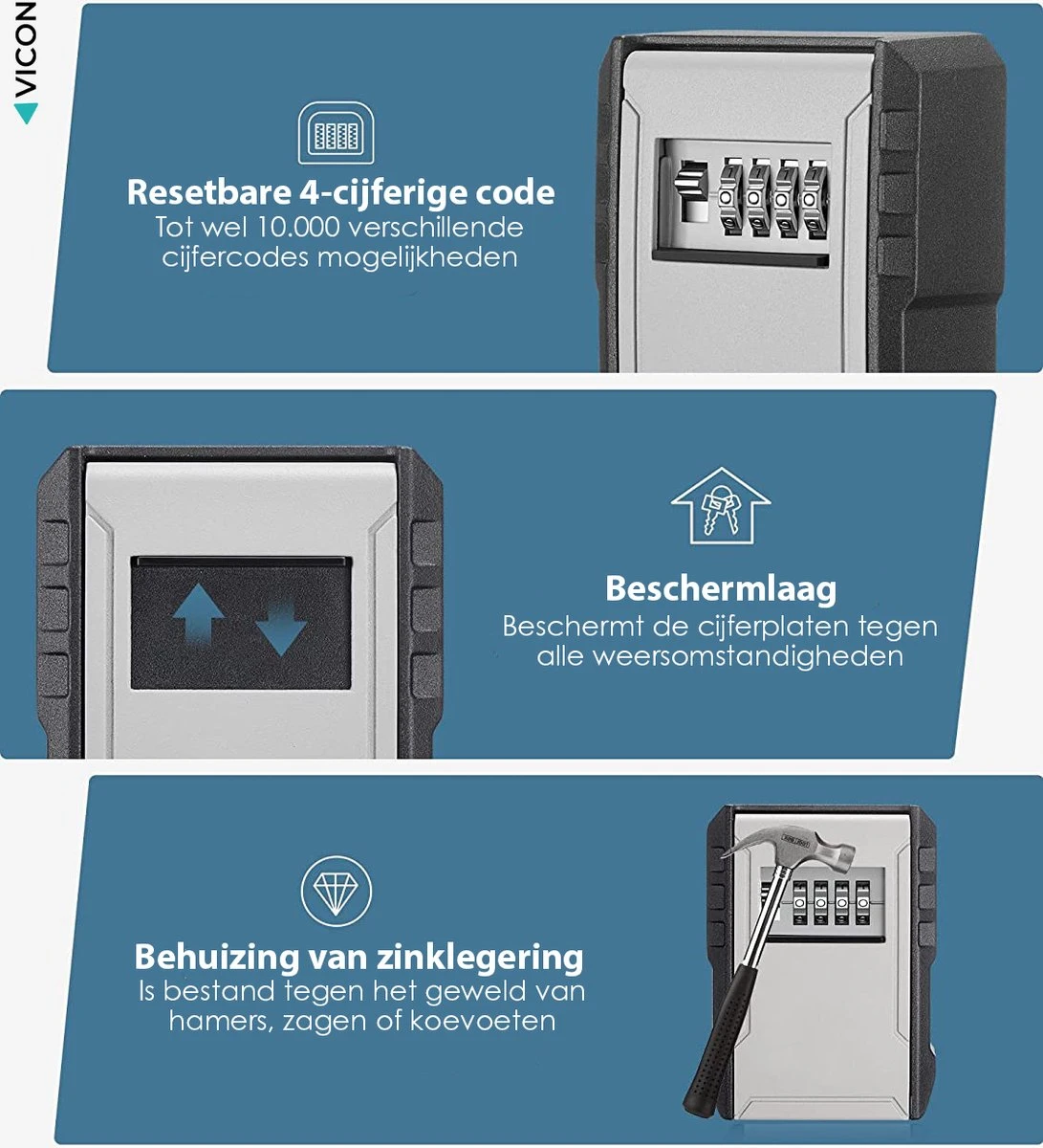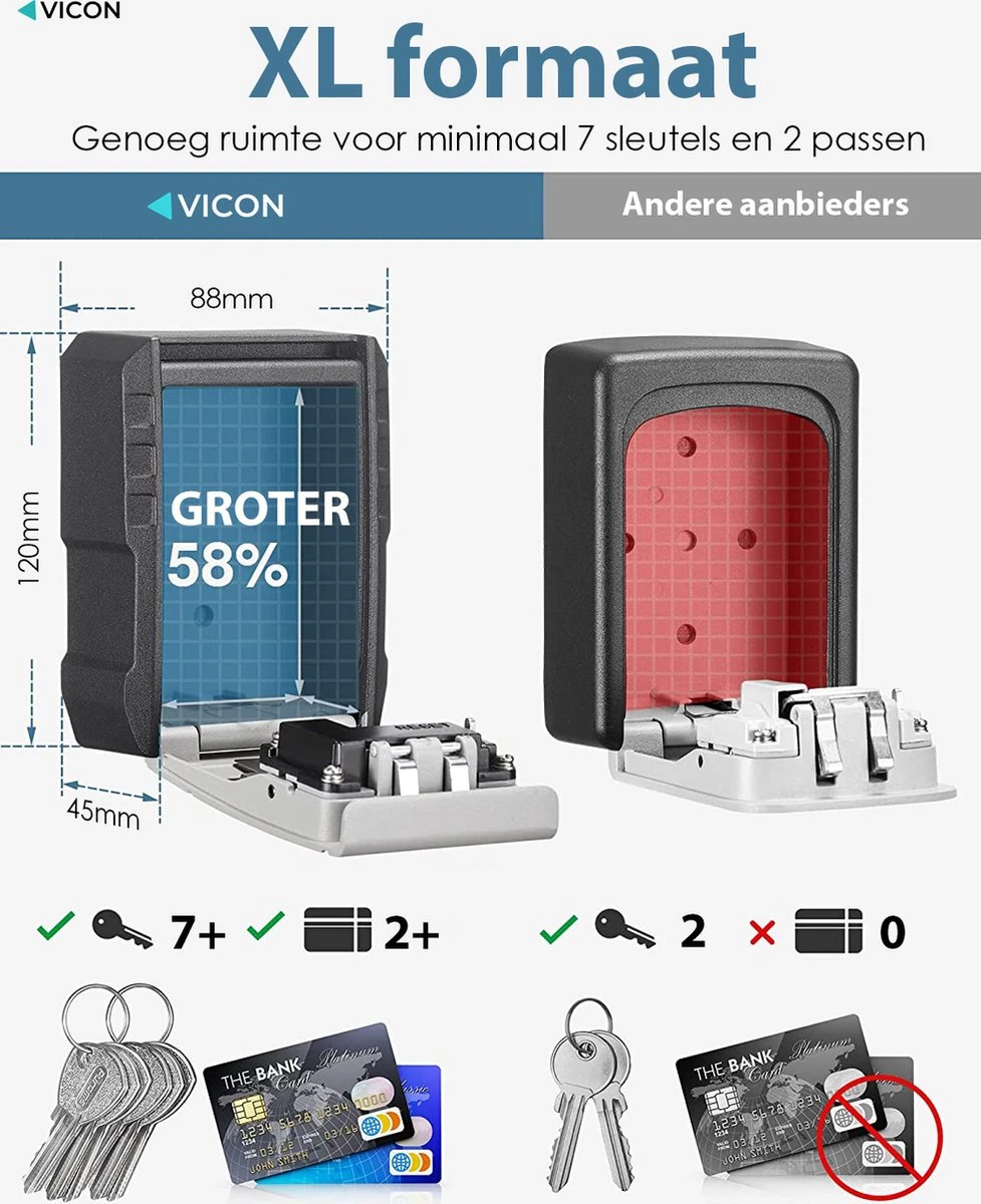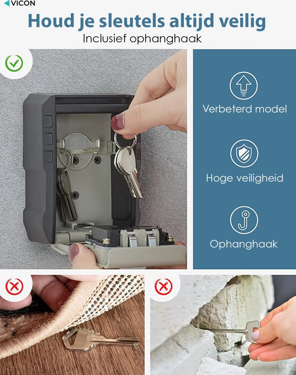 Bestel de Vicon Sleutelkuis vandaag en maak gebruik van 100% gratis verzending! Wij geloven heilig in de kwaliteit van onze producten en garanderen daarom ook een kosteloze 30 dagen retourgarantie op al onze producten. Twijfel niet langer en neem zonder risico jouw sleutelkluis in huis!