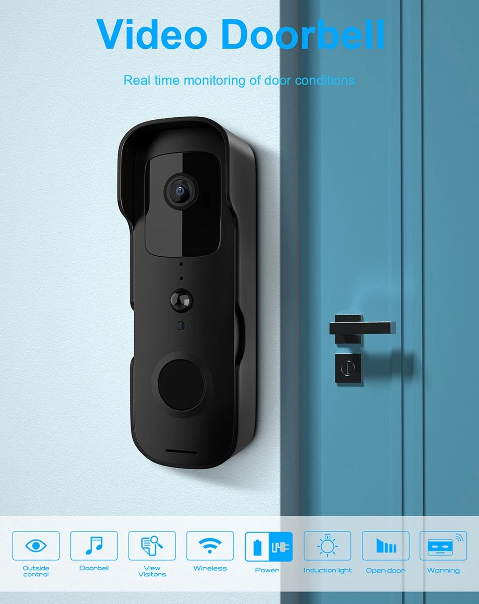 [1080P Full HD & Nachtzicht] 1080P Full HD-resolutie zorgt voor superheldere beelden. Een bredere kijkhoek van 155 ° geeft u een completer beeld van wat er buiten uw deur gebeurt. De deurbelcamera voor thuisbeveiliging kan dag en nacht worden gebruikt, hij bewaakt uw huis met 1080 HD-video, infrarood nachtzicht en livebeeld. [Smart PIR-bewegingsdetectie en waterdicht] De ingebouwde PIR-bewegingssensor detecteert de kleinste beweging voor de deur. Als iemand er te lang over doet, krijg je een pushmelding op je telefoon. Controleer altijd en overal op verdachte activiteiten. De draadloze deurbelcamera is waterdicht en kan onder alle weersomstandigheden worden gebruikt. [2.4G wifi en eenvoudige installatie] De slimme videodeurbelcamera kan verbinding maken met 2,4 GHz wifi. Deze draadloze deurbelinstallatie voor thuisbeveiliging. [Beveiligde lokale opslag] De videodeurbel maakt gebruik van financiële codering, ondersteunt 64G Micro SD-opslag (niet inbegrepen in de levering) om uw persoonlijke privacybeveiliging te maximaliseren en gegevenslekken te voorkomen. Waar je ook bent, je mist nooit een moment. [Optioneel met een kamerbeltoon] In combinatie met de deurbel, kun je de beltoon in elke kamer horen, je beltoon herinnert je er altijd aan wanneer er iemand voor de deur staat. U mist geen enkele bezoeker.Pakket Inbegrepen: