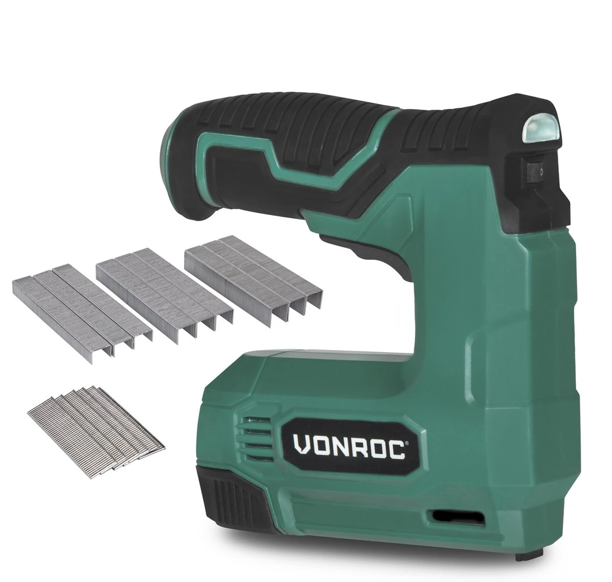 Deze 4V nietmachine van VONROC wordt geleverd inclusief 10mm spijkers en diverse maten nieten (6mm, 8mm en 10mm). Na levering kun jij dus direct aan de slag! Deze accu nietmachine is een zeer handzame machine dankzij zijn lichte en compacte ontwerp. Zo kun je met deze machine in elk hoekje komen, en ook strak langs een muur of in een krappe ruimte nieten, bijvoorbeeld in een lade van een kast.