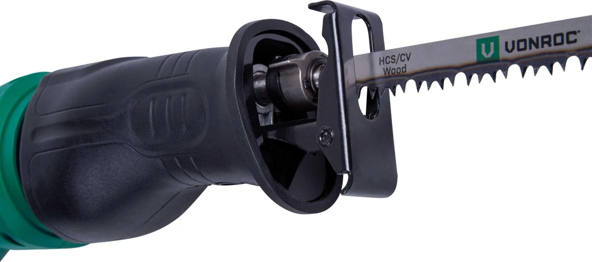 Zaag eenvoudig (nat) hout, kunststof en metaal zoals aluminium met deze reciprozaag van VONROC. De ideale machine om materiaal vlak langs het oppervlak te zagen, zoals bijvoorbeeld leidingwerk in een muur. Ook voor het snoeien van bomen en het maken van gaten middenin plaatmateriaal is deze machine de perfecte uitkomst!