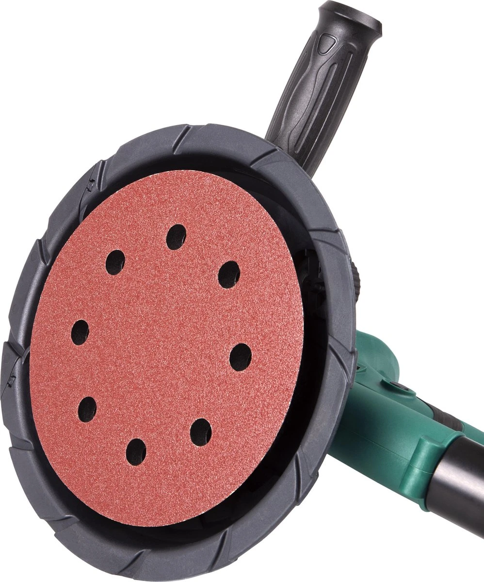 Deze schuurmachine van VONROC maakt een ronddraaiende schuurbeweging. Dit heeft als groot voordeel dat je er sneller grotere oppervlakken mee kan schuren en is daarom ideaal voor muren en plafonds. Dankzij het afneembare kapje kun je tevens vlak langs randen schuren. Deze complete set wordt geleverd inclusief 33 vellen schuurpapier, bestaande uit verschillende korrels. Na levering kun jij dus direct aan de slag!