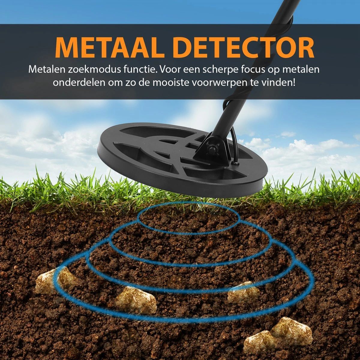 Met de waterdichte zoekspoel tot een diepte van 35 cm en ingebouwde pinpointer ontvang je een unieke combinatie om objecten uit te peilen. Deze functie gebruik je om het gevonden object nog nauwkeuriger te lokaliseren. Met zijn uitschuifbare steel en ergonomische verstelbare armsteun schuif je eenvoudig de steel uit tussen de 78 cm en 107 cm. De metaaldetector is zeer eenvoudig in elkaar te zetten en vereist geen speciaal gereedschap. Op het dashboard vind je een ingang voor een koptelefoon of oordopjes en een volumeknop. Inclusief de Koptelefoon die je er bij krijgt kun jij nu met focus op pad zonder een ander te storen. Stel zelf de gevoeligheids modus in en vindt grotere voorwerpen tot wel 35 cm diep en kleinere voorwerpen tot 15 cm diepte.