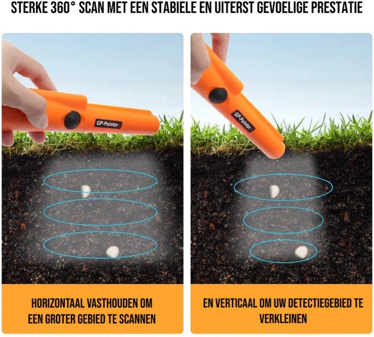 U kunt de GP pointer overal makkelijk mee naartoe nemen enorm voordeel van zo kleine pinpointer u ontvangt er ook een holster bij zodat u hem altijd makkelijk weg kan stoppen. Hou er rekening mee de GP pointer is niet volledig waterdicht alleen het voorstuk waar u alles mee waarneemt kan tegen water dus let aub op!!
