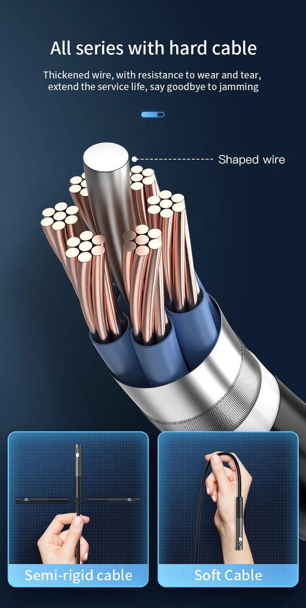Onze endoscopische camerakabel is semi-rigide en hierdoor gericht te dirigeren naar een te inspecteren punt. De endoscoop is voorzien van 2 cameralenzen met een beeldtransmissie van 1080P. Verder bevat de camerasonde 6 leds waardoor u een nog helderder beeld op uw smartphone ontvangt.