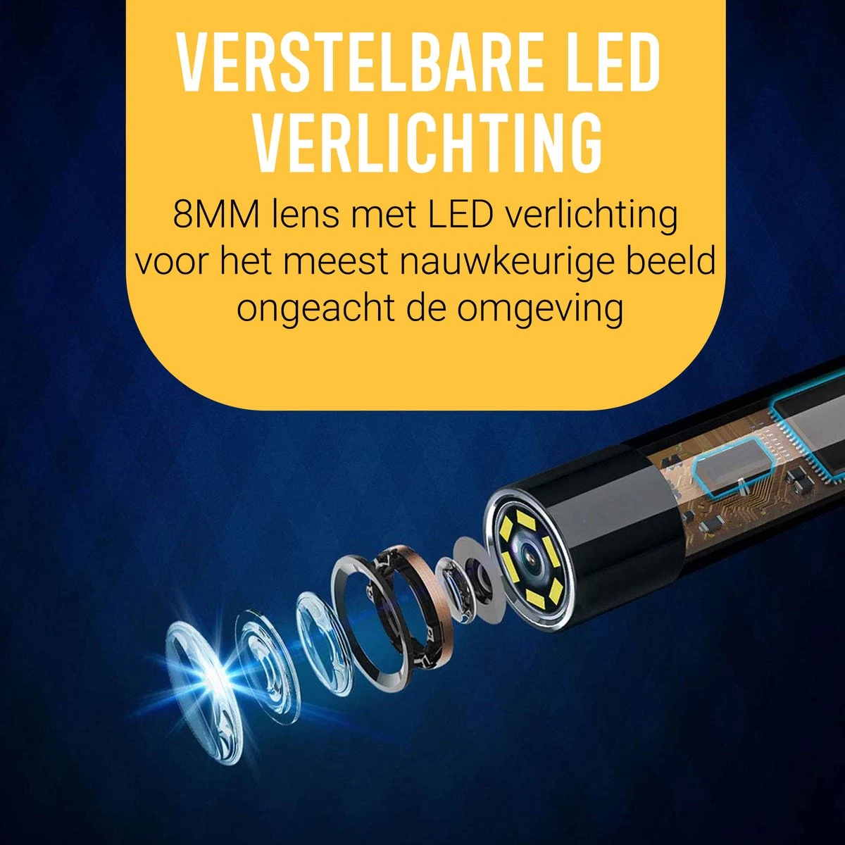 De beelden worden via de lens vastgelegd in 1080P HD. Hierdoor zijn de beelden haarscherp en zijn alle details goed te zien. Ga je een donkere plek of leiding inspecteren? Dat is voor deze endoscoop geen probleem. De endoscoop is namelijk voorzien van ingebouwde LED verlichting om bij te kunnen schijnen.