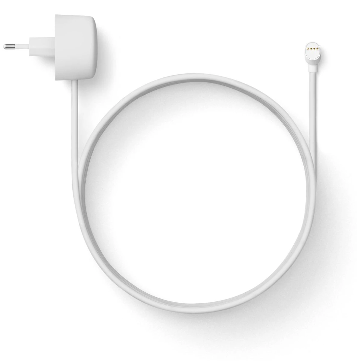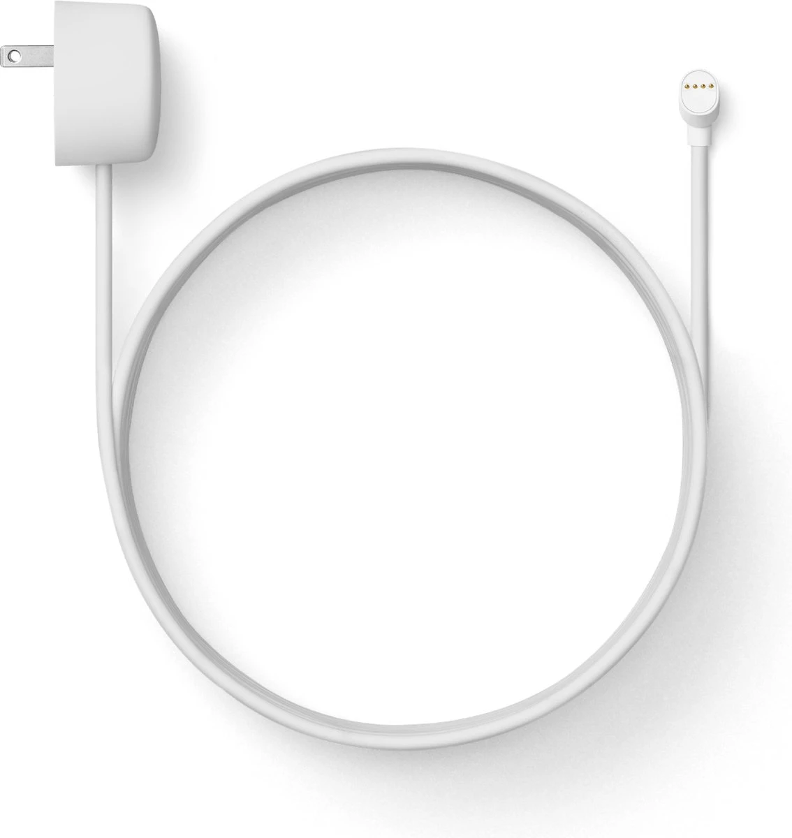 Altijd verbonden met aansluiting op stopcontact. De weerbestendige kabel (beschikbaar in lengtes van 5 en 10 meter) en de voedingsadapter zorgen ervoor dat de Nest Cam continu van stroom wordt voorzien.