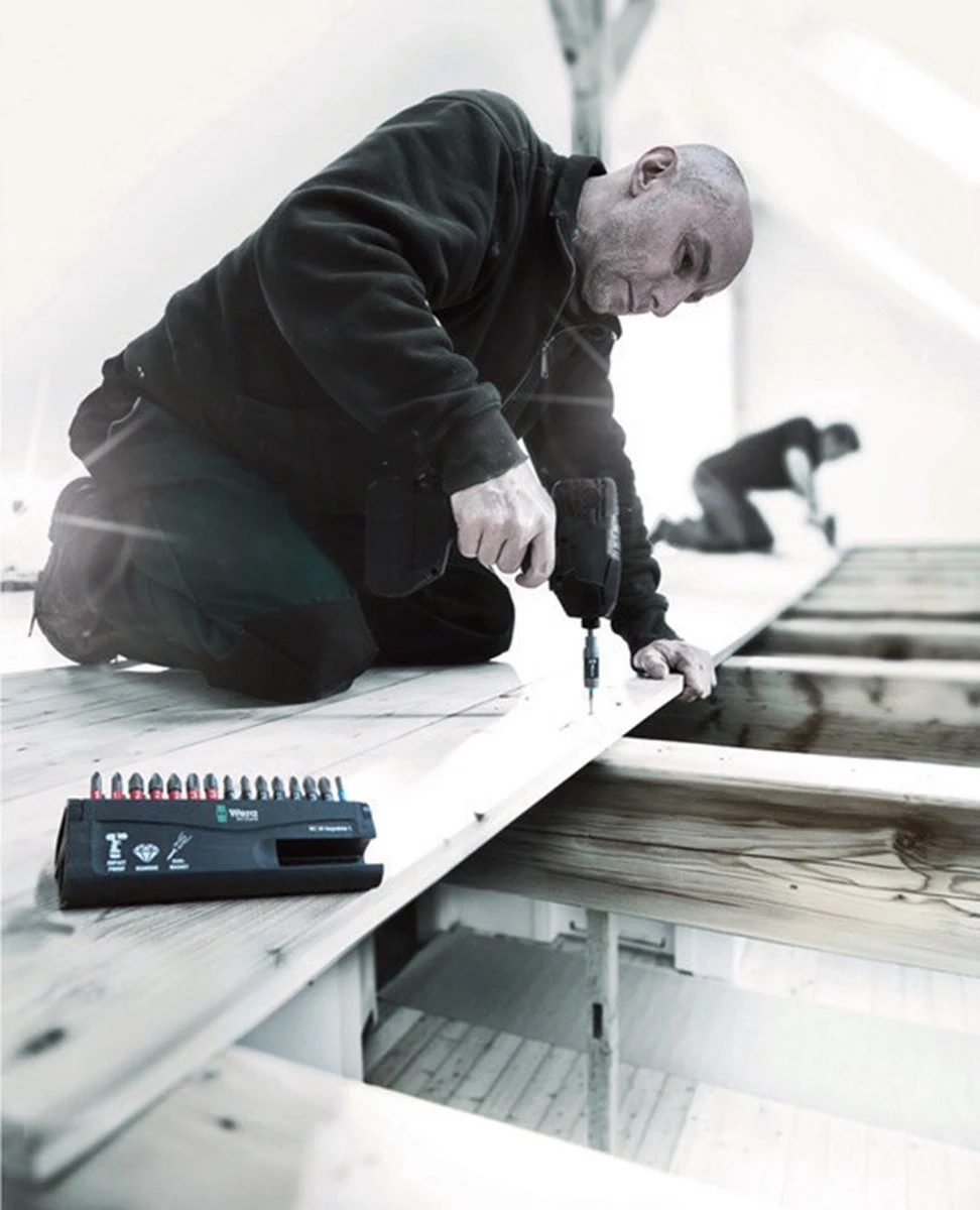Impaktor houder met spanring en ringmagneet. 29 Impaktor bits. Door een mix van de best mogelijke materiaaleigenschappen en door optimaal, voor extreem gebruik, aangepaste geometrieën bereiken de Wera Impaktor gereedschappen uitzonderlijke standtijden. Bijzonder geschikt voor (Impact) handschroefmachines. De houder met interne magneet houdt extra lange en zware schroeven stevig vast. Ideaal voor het werken boven het hoofd. De kleine stukjes diamant, die op de punt van de bit zijn opgebracht, bijten zich in de schroef vast en zorgen voor een superieure grip en voorkomen het uitglijden uit de schroefkop.