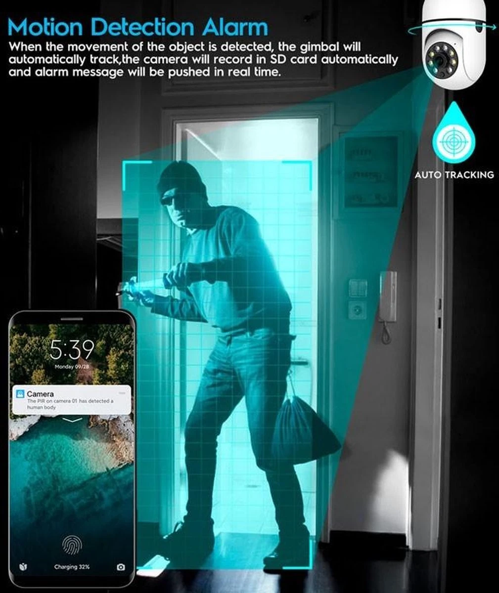 De camera heeft de mogelijkheid om horizontaal en verticaal te roteren, en om in te zoomen. De brede kijkhoek en nachtvisie maken het mogelijk dat je extra veel kan zien, ook in het donker! Hoge precisie bewegingsdetectie, zodra abnormale beweging is gedetecteerd, ontvang je direct waarschuwingen van de toepassing op je IOS/Android-apparaat.